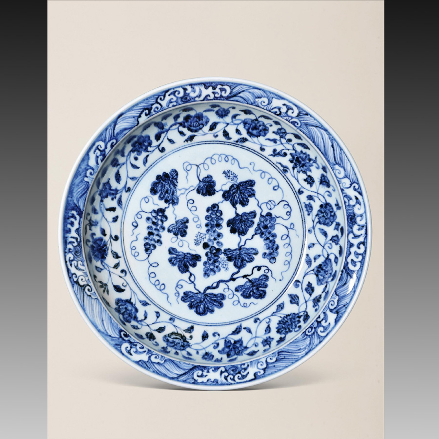 青花葡萄紋摺沿盤