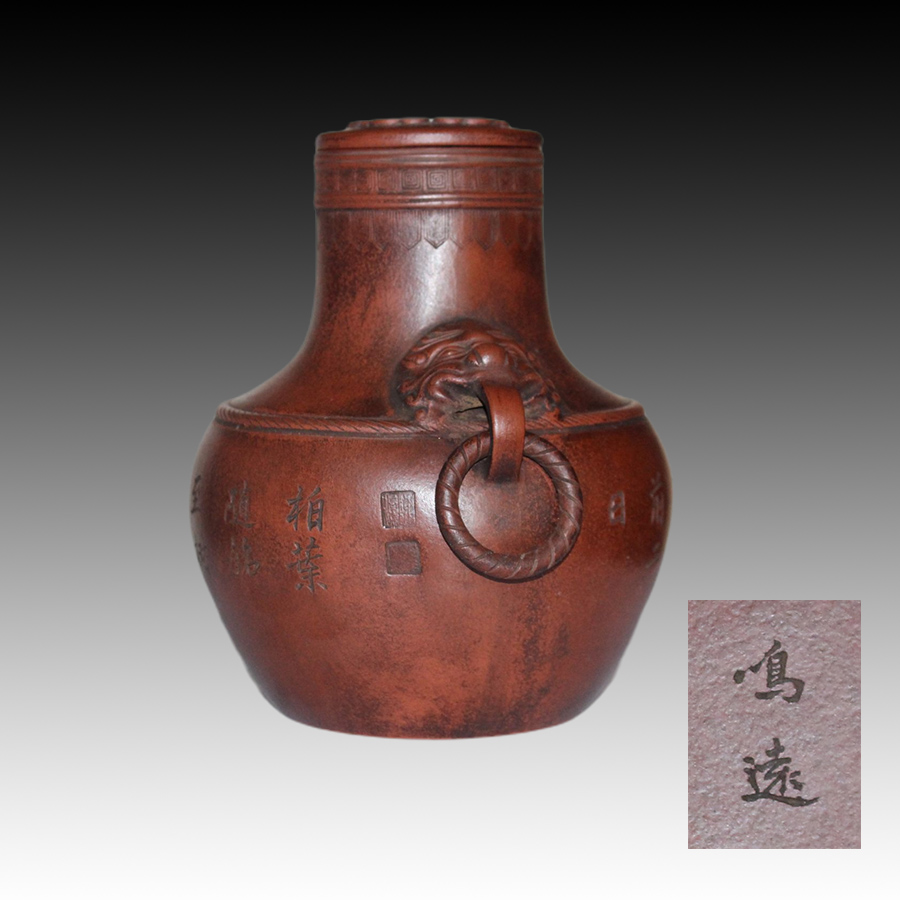 陳鳴遠製壺技藝精湛全面,又勇於開拓 創新。他仿製的爵、觚、鼎等古彜器,工藝精, 品位高,古趣盎然。所製茗壺造型多種多樣, 特別善於自然型類砂壺的製作,作品有瓜形壺、 蓮子壺、束柴三友壺、松段壺、梅幹壺、蠶桑 壺等均極具自然生趣,把自然型壺在明人的基 礎上,進一步推向藝術化的高度。這些壺式不 僅是他的傑出創造,而且成為砂壺工藝上的歷 史性造型,為後來的製壺家們廣泛沿用。